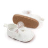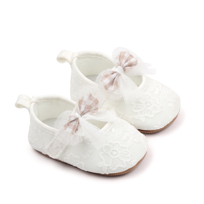 Cu o nuanță delicata de alb, acești balerini au o eleganță subtilă care se potrivește perfect cu farmecul unei bebeluse. Fundița drăguță aplicată pe bareta fiecărui balerin adaugă o notă adorabilă și aduce un zâmbet pe chipul oricui. Fiecare detaliu a fost gândit pentru a oferi confort și susținere în timpul primelor aventuri ale bebelușului dumneavoastră.