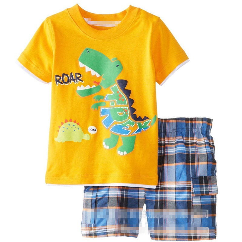 Compleu T-rex baietei format din tricou cu maneca scurta si pantaloni scurti. Tricoul cu maneca scurta are un decupaj rotund la baza gatului, iar pantaloni au in talie banda elastica. Setul este potrivit pentru zilele calduroase de vara si este imprimat cu imagini vesele si colorate.