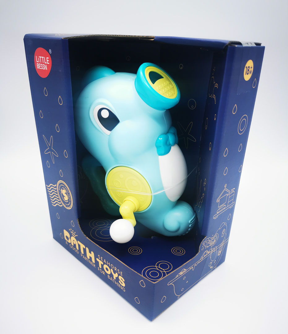 Jucarie stropitoare cu forma unui calut de mare ce ii va atrage imediat pe micuti. In jucarie se pune apa cu usurinta, apoi copii se pot juca stropind.