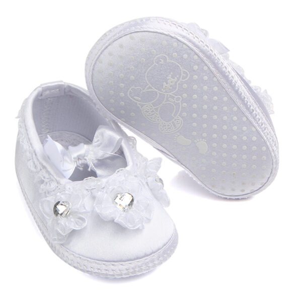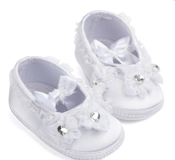 Pantofii fetite botez,sunt perfecti pentru micuta dumneavoastra. Confortabili si usor de purtat,are o bareta peste picior elastica pentru o sustinere mai buna a piciorului fara ca aceasta sa stranga sau sa lase urme.