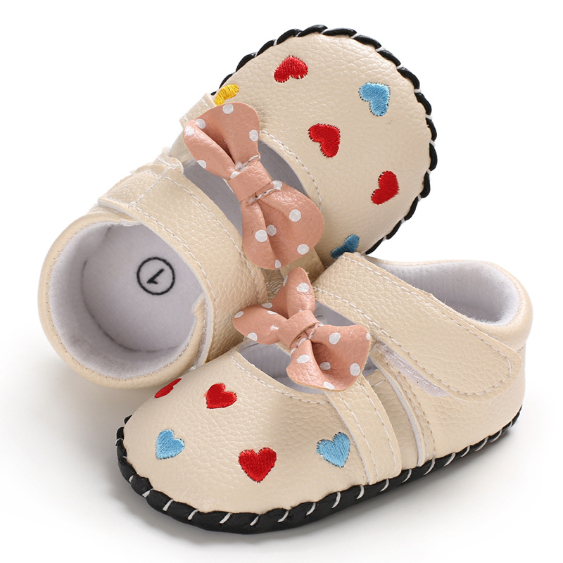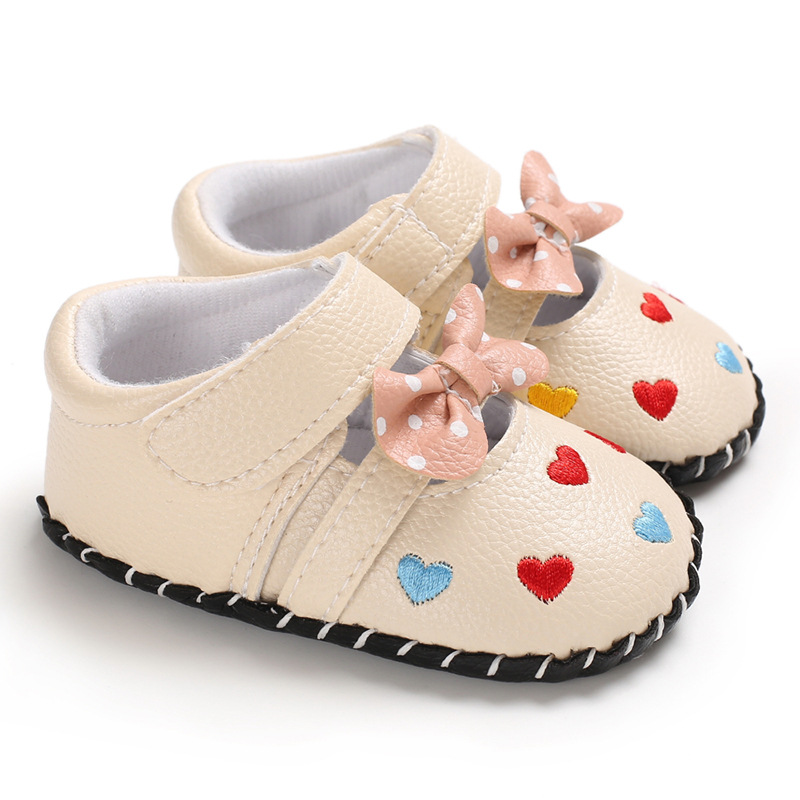 Pantofiorii pentru fetite inimioare sunt alegerea perfecta pentru plimbari in oras dar si pentu tinutele elegante. Se inchid cu o bareta cu arici intr-o parte. Talpa este prevazuta cu doua cercuri de cauciuc pentru o buna aderenta. Design-ul perforat ofera piciorului o buna respiratie, flexibilitate si confort in timpul mersului.