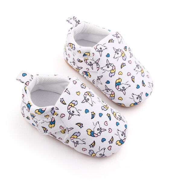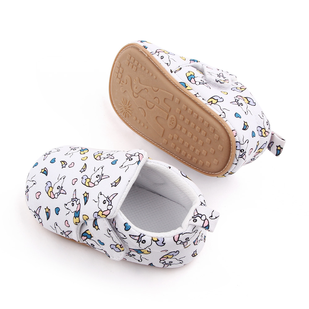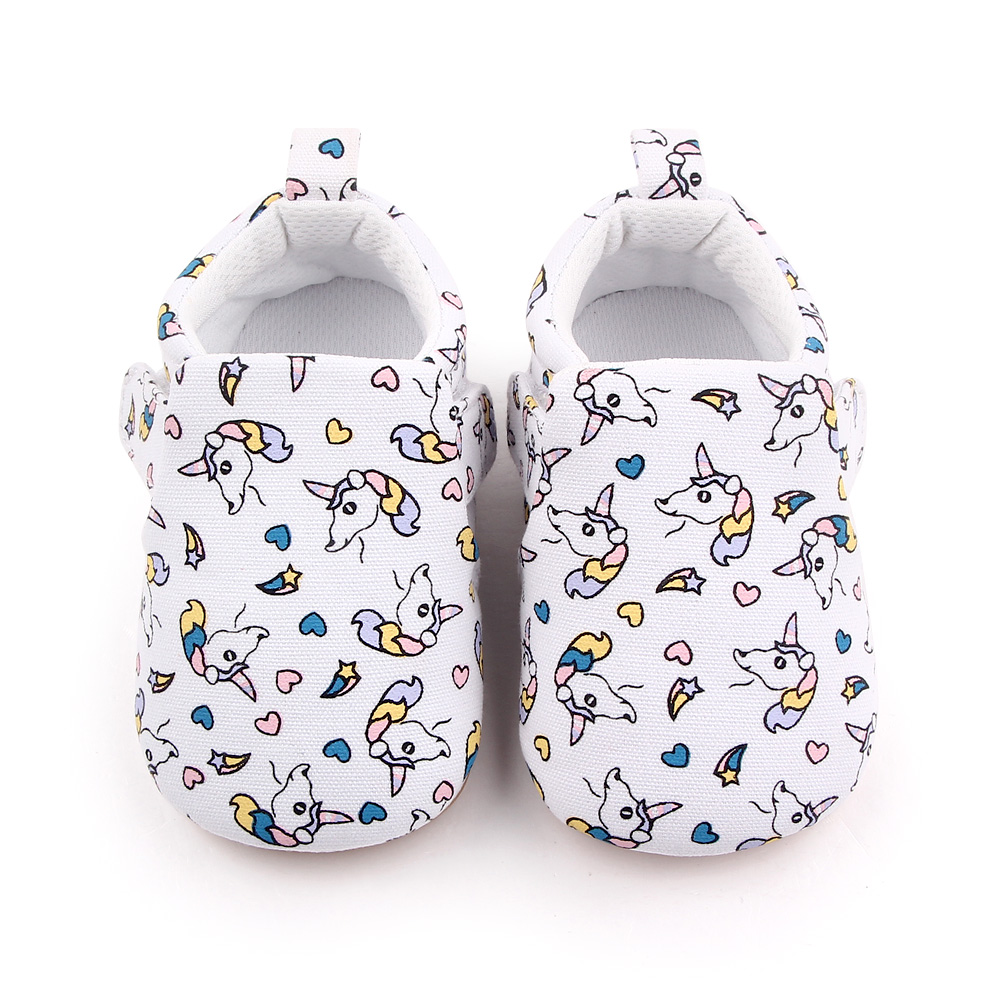 Papuceii albi unicorn sunt alegerea perfecta pentru plimbari in oras dar si pentru tinutele casual. Se inchid cu o bareta cu scai pentru o fixare mai buna pe picior.