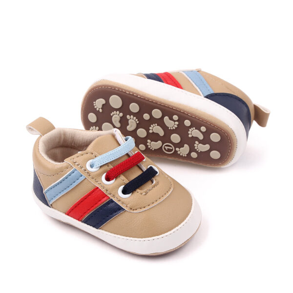 Papucei maro Parker pentru baietei veseli. Acestia se inchid cu sireturi din elastic. Talpa prevazuta cu buline din cauciuc ofera o buna aderenta. Sunt foarte potriviti pentru iesirile in parc cu familia completand o tinuta casual draguta.