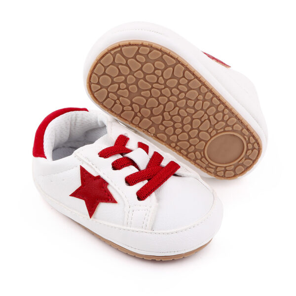 Papucei sport steluta rosie copii simpatici. Acestia se inchid cu siret elastic. Sunt foarte potriviti pentru iesirile in parc cu familia completand o tinuta draguta.