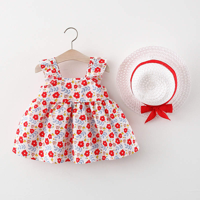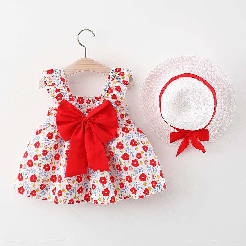 Rochita florala Rosalia este potrivita pentru zilele de vara. O rochita cu imprimeu floral, in clos si prevazuta la spate cu o fundita rosie eleganta. Un model lejer si elegant pentru micutele domnisoare.