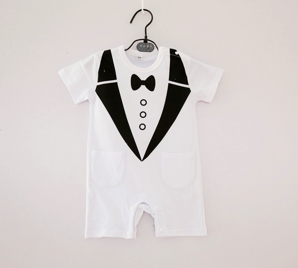 Salopeta alba eleganta confectionata din bumbac cu un imprimeu elegant. Salopeta baietei cu un croi lejer si inchidere cu capse ce permite imbracarea facila a acesteia.