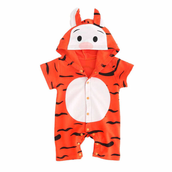 Salopeta portocalie model tigru de nelipsit din garderoba bebelusului in zilele calduroase de vara. Salopeta unisex cu un croi lejer si inchidere cu capse ce permite imbracarea facila a bebelusului.