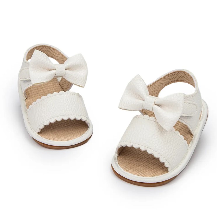 Sandale albe bareta fundita perfecte pentru vara, ce o vor ajuta pe micuta ta sa descopere lumea. Sandale confortabile cu sistem de inchidere cu scai.